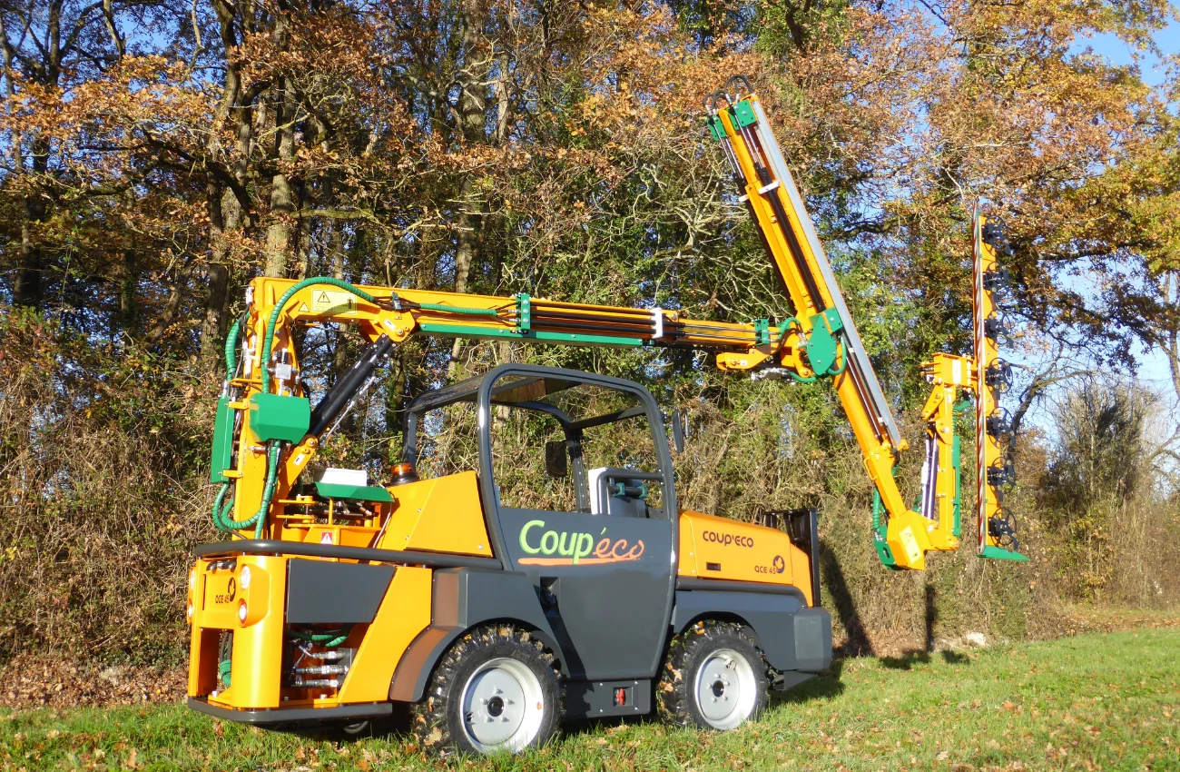 The Galax 6000 illustrates Coup'Eco's expertise in mechanical pruning for municipal green spaces. Designed and manufactured in the Charente-Maritime region of France, it has been developed to meet the specific constraints of urban maintenance: small size, ease of use, limited maintenance and consistent quality of cut.