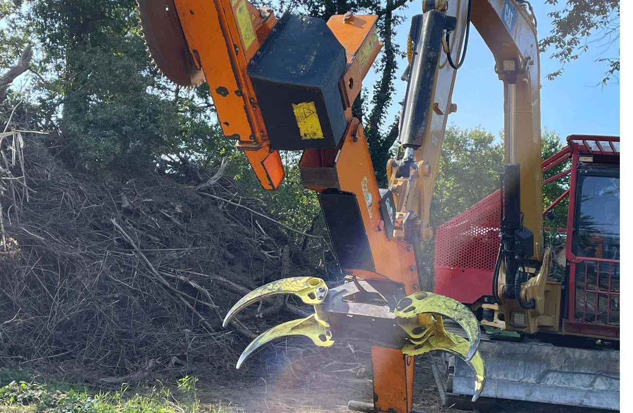 Compact, robust, and efficient, the P180i retains the mounting on the excavator and easily adapts to the demands of the most complex sites. The addition of the grapple allows for direct handling of branches after cutting, greatly simplifying logistics on the job site.