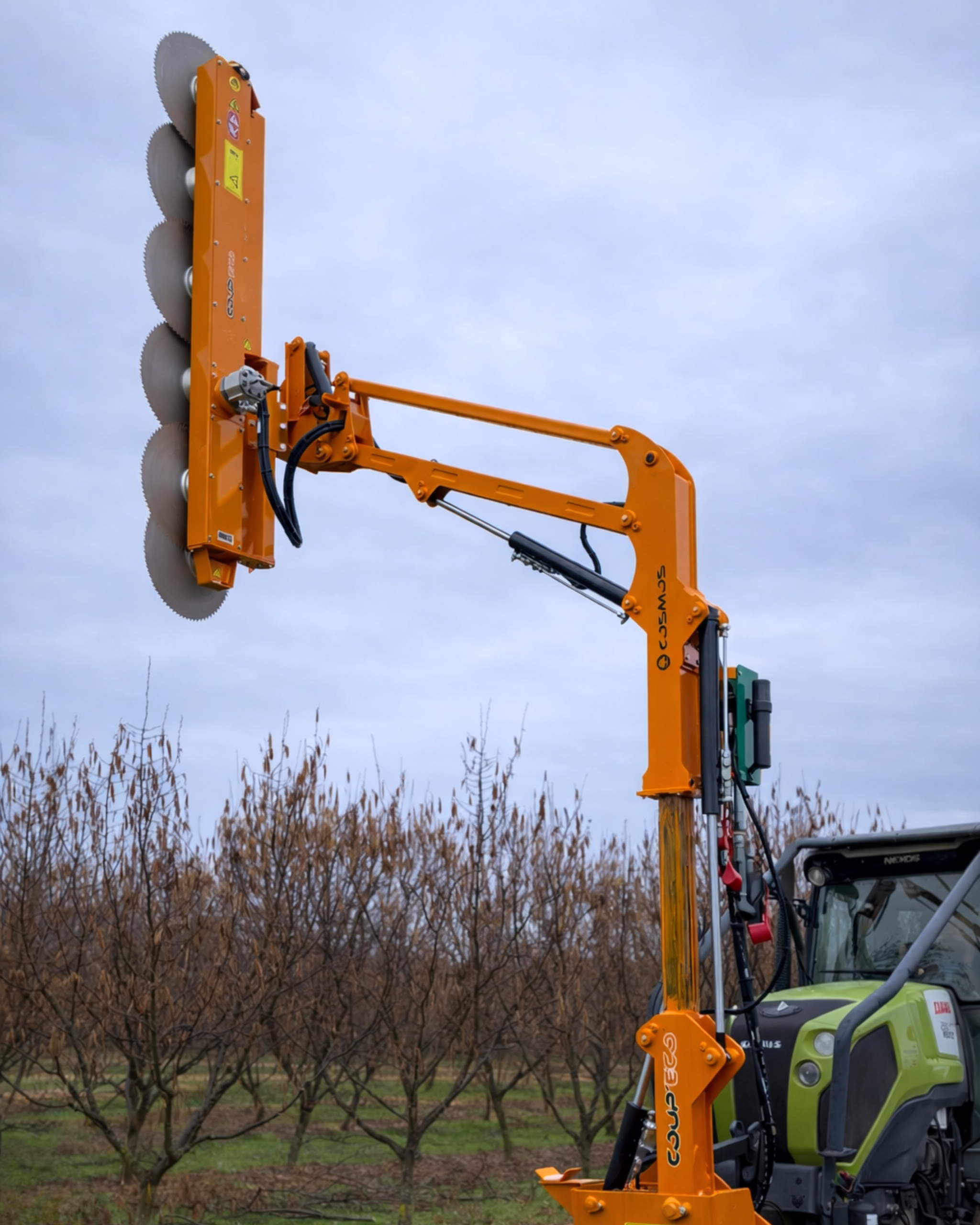 Pensée pour les arboriculteurs exigeants et les professionnels des travaux agricoles, la Cosmos 104T incarne la puissance et la polyvalence. Véritable machine de référence dans la taille mécanique des vergers, elle est conçue pour intervenir sur des arbres de grande hauteur, des haies fruitières particulièrement denses, ou même sur les bordures de routes et de parcelles. Avec sa portée verticale impressionnante de 6 m et son bras télescopique, elle répond parfaitement aux besoins des exploitations modernes qui cherchent à gagner du temps tout en garantissant une qualité de taille irréprochable. Elle s’adresse aussi bien aux CUMA qu’aux grandes exploitations arboricoles ou aux entreprises de travaux agricoles qui interviennent sur des surfaces importantes.